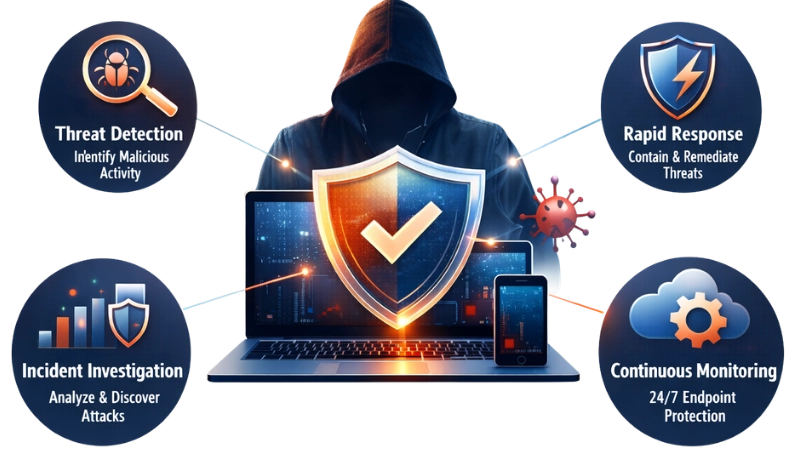 Endpoint Detection and Response (EDR) helps address this challenge by providing continuous monitoring, behavioral analysis, and real-time threat detection at the endpoint level. Unlike traditional security solutions that depend on known threat signatures, EDR focuses on identifying unusual patterns, suspicious activities, and anomalies across devices such as laptops, servers, and workstations. Instead of waiting for security breaches to become visible through system failures or data loss, EDR proactively detects threats early in the attack lifecycle. This allows security teams to investigate, contain, and remediate incidents quickly-reducing response time, minimizing potential damage, and strengthening the overall Network Security posture of the organization.